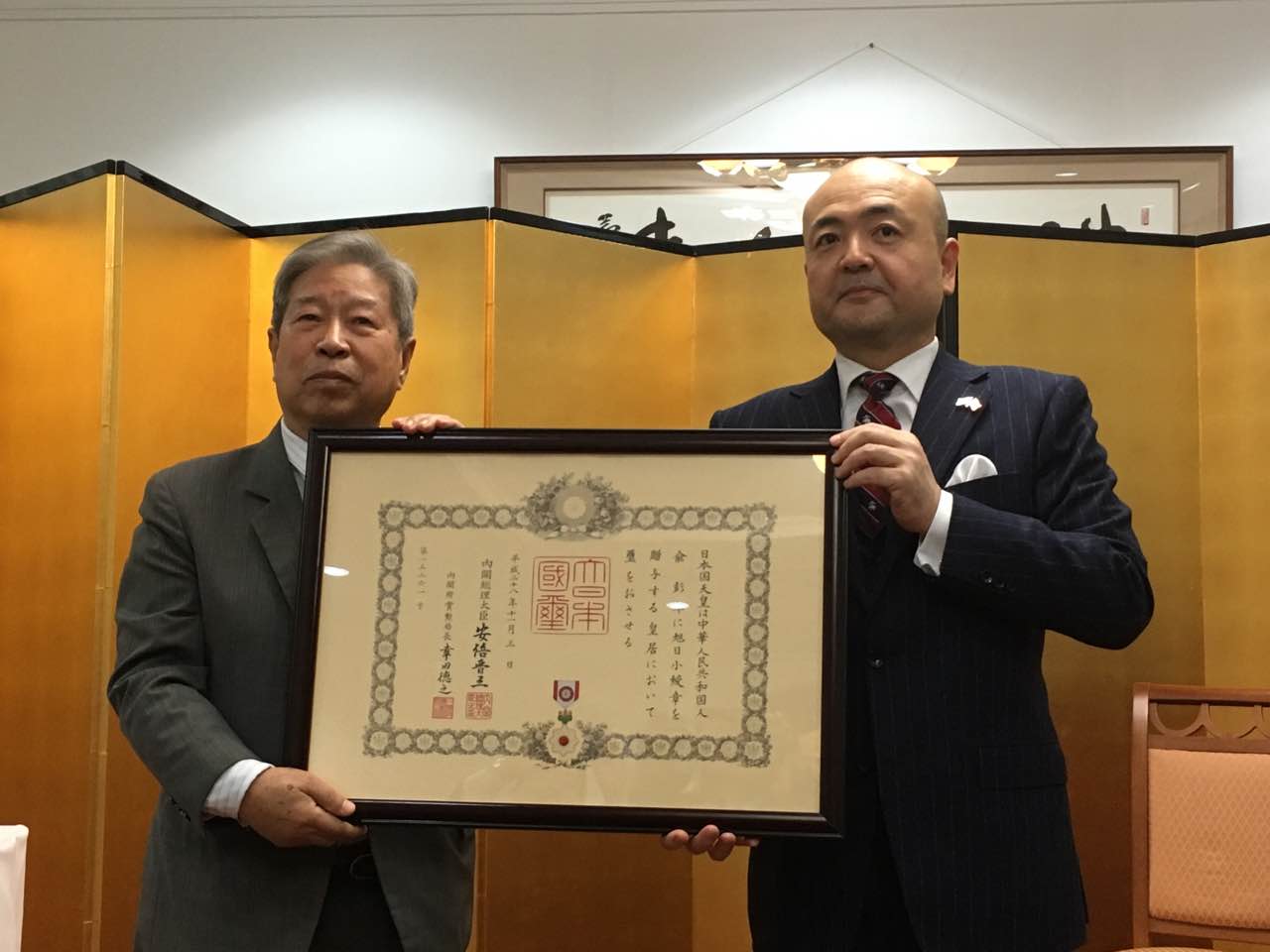 此外,来自与俞会长渊源颇深的长崎县中村法道知事、田中爱国长崎县议会议长率领的长崎县代表团一行也专程来到上海参加了仪式,共庆俞会长获勋。