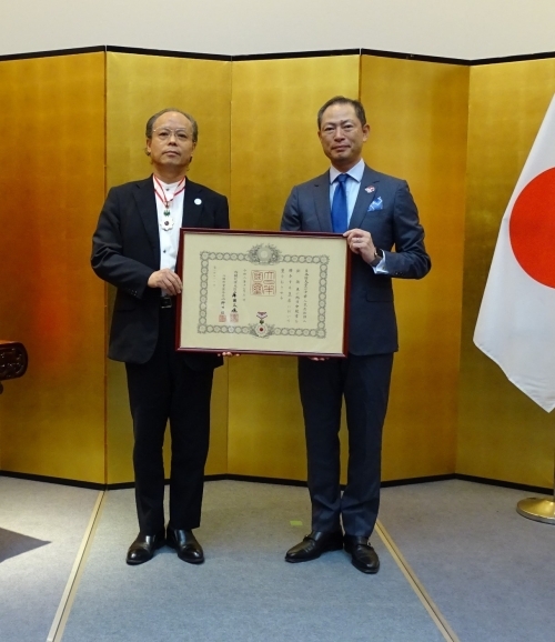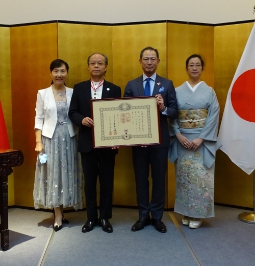 刘卫东院长于2021年秋获得外国人叙勋旭日中绶章。刘院长1999年就任浦南医院院长,在该院首次设立了有日语医生常驻的国际医疗部,为上海及周边地区日本人完善医疗服务和环境,同时自1989年留学大阪医科大学直到现在,长期致力于加强日中两国医疗领域的人员交流,并分别于2015年和2018年获得在外公馆长表彰、外务大臣表彰。