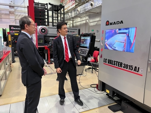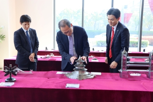 赤松大使在白石大・天田(中国)有限公司总经理等有关负责人的陪同下,参观考察了该公司技术中心展示厅、系统升级工厂等设施,就公司的事业概要、中国市场的具体运作等内容听取了相关介绍并进行了座谈。