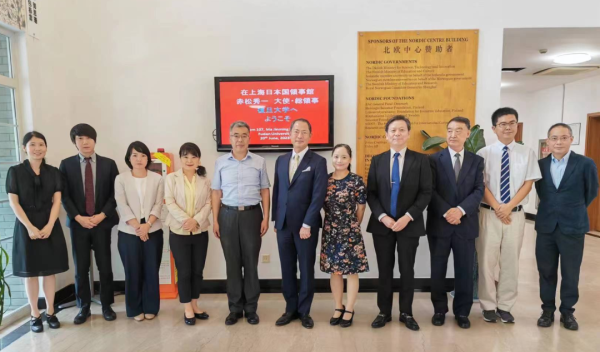 随后,赤松大使与国际合作与交流处副处长许烨芳、副科长朱一飞、国际关系与公共事务学院院长苏长和、日本研究中心主任胡令远、日语语言文学系主任邹波、基础医学院教授王继扬、生命科学学院外籍专家服部素之等,就日中间的学术交流、青少年交流等交换了意见。