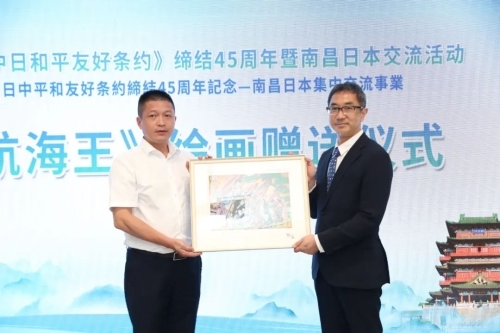 6月18日,我馆与南昌市人民政府在南昌高松中日友好会馆共同举办了“-日中和平友好条约缔结45周年纪念-南昌日本集中交流活动”。开幕式上,赤松大使向该会馆颁发了在外公馆长表彰。出席本次开幕式的日方嘉宾有日本国际交流基金会国际对话部部长小岛宽之、上海佳途国际旅行社有限公司总经理户井田和彦、全日本空输上海支店长星英树、集英万梦(上海)实业有限公司董事总经理阿相道广等;中方嘉宾有江西省人民政府外事办公室副主任李雨强、南昌市人民政府副市长赵捷等,南昌市人民政府外事办公室主任梅梅主持本次开幕式。