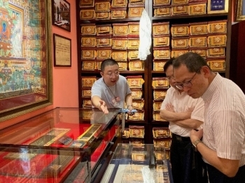 8月2日,赤松秀一总领事·大使参观了上海梵典古籍文献研究中心(梵典宫),并在该中心王宣力研究员的陪同下,参观了该中心所藏的梵语、藏语、汉语等语言的佛教经典、文献资料和藏品等。
