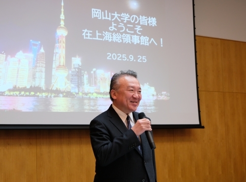9月25日午後、大使・総領事の岡田勝は、当館において、上海を訪問した岡山大学法学部の学生の方々にお会いしました。