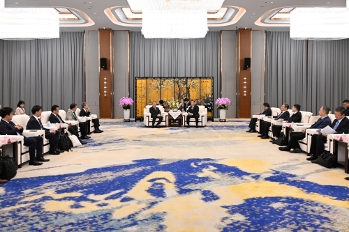 10月22日下午,总领事、大使冈田胜在江苏省盐城市会见盐城市委书记周斌。