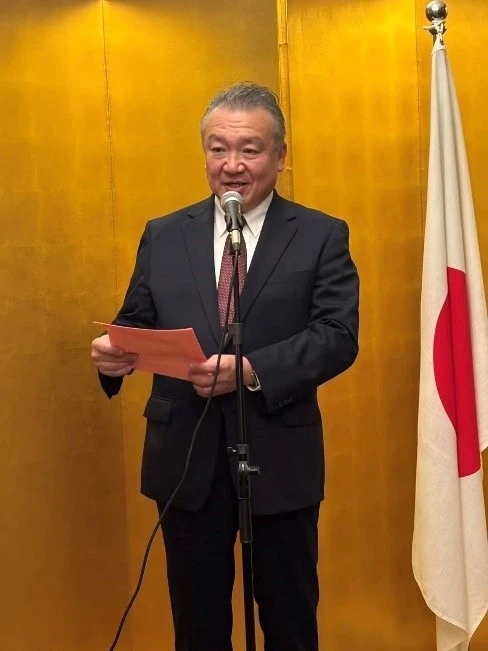 総領事は、朱寅氏はヤオハングループの中国投資プロジェクトに携わったのち、日本伝統芸術・創作和太鼓集団「鬼太鼓座」と「陝西太鼓青年」との共同マラソンツアーをアレンジしたことが音楽との接点となり、それ以来日中アーティストの当地公演を長年にわたり実現してきた旨述べました。