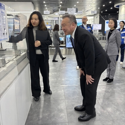 3月2日午後、総領事・大使の岡田勝は、オムロン(上海)有限公司を訪問し、徐堅・オムロン(中国)有限公司董事総経理、顧瀋邦・オムロン(上海)有限公司総経理をはじめとする責任者と意見交換を行い、中国におけるファクトリーオートメーションの状況に関する説明を受けました。その後、ショールーム及び製造現場を訪問し、現場の状況を見ました。