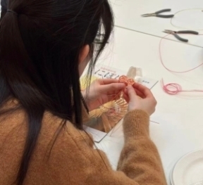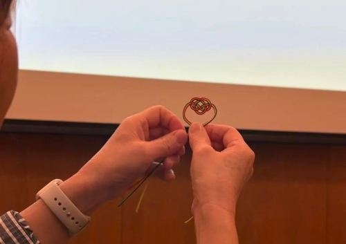 参加者们分别制作了两款水引作品,分别是基础款淡路结和从淡路结演变而来的梅花结。
