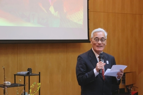 竹中惠一在致辞中回顾了2018年为纪念日中和平友好条约缔结40周年,小笠原流煎茶道第五代家元小笠原秀道专程访问上海,并在我馆举办讲座及茶会时的情景,向小笠原流煎茶道表达了感谢。同时,向创立于2015年的小笠原流煎茶道上海支部多年来开展的各项活动以及对我馆工作的大力支持表示了感谢,并期待以煎茶道为媒介,日中友好交流取得进一步发展。