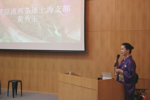 接着,小笠原流煎茶道上海支部长黄秀玉教授进行了煎茶道讲座,介绍了小笠原流煎茶道创立至今的日中茶文化交流历史。