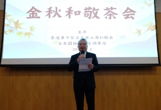 青柳昌司会长在致辞中表示,日本茶道重视品味季节变迁,茶点也意在表现秋日意境,衷心希望各位能尽情享受。上海和敬会今后也将继续在共享里千家茶道的同时,致力于推动日中友好与文化交流。