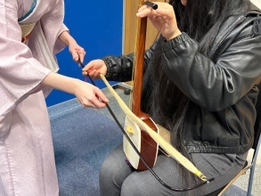 神户邦乐工作坊的各位老师演绎了《鹿的远音》(尺八)、筝《春之海》(筝)、《千鸟之曲》(胡弓与小鼓)以及《土蜘蛛》(琵琶)等展现日本传统乐器独特魅力的经典曲目,配合主理人名村茂代老师的讲解,让观众们在品味和乐器独特韵味的同时,进一步增进了对和乐器的理解。演奏会结束后,观众们体验了各种和乐器。