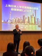 3月3日上午,总领事、大使冈田胜在本馆新闻文化中心与上海日本人学校高中部学生进行交流。84名学生和21名老师出席本次交流活动。