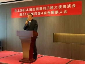 3月25日晚,总领事、大使冈田胜在上海出席日本四国4县联合同乡会2026年联欢晚会并发表题为“从上海看中国经济”的演讲。日本四国4县(德岛、香川、爱媛、高知)的约50名人士出席晚会。冈田胜指出,上海及其周边地区离日本较近,与日本有着悠久的友好交流历史。四国4县的朋友们在上海生活工作,增进两国人民之间的友谊,对此致以由衷的敬意。冈田胜强调,总领事馆的最重要任务是确保日本侨民的安全和支持日资企业的活动。祝四国更加发展、四国朋友在上海一切顺利!