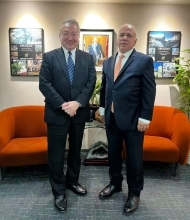3月30日上午,总领事、大使冈田胜前往乌拉圭驻上海总领事馆会见外国驻上海领事团团长、乌拉圭驻上海总领事马塞罗·马龙(Marcelo Magnou)。冈田胜欢迎马龙总领事担任领事团团长,感谢马龙总领事出席日前举办的2026年庆祝天皇陛下诞辰招待会。