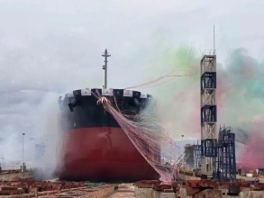 23日上午,冈田胜来到常石集团(舟山)造船有限公司办公大楼,听取公司的发展历史和现状,还就当前的造船业情况交换意见。随后,冈田胜参观造船厂现场,与总经理村上佳史等公司领导和工作人员共同出席大型货船的下水仪式。