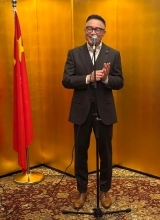 また現在では、日本アイドルグループに端を発したアイドルのプロデュース事業及び音楽事業にも携わっていることに触れ、陳金歓氏が映画やオフラインイベントを通して、中国の人々に広くそして深く日本文化を発信していることに改めて心から感謝と敬意を述べました。その上で、陳金歓氏が引き続き日中友好を増進する文化交流や人的往来をはじめとする民間交流の促進に向けて活躍されることを期待している、総領事館としても、引き続き両国間の文化交流を全力で支持すると述べました。