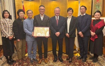 2月26日、総領事・大使の岡田勝は、総領事公邸にて陳金歓・新ゲツ文娯国際有限公司総裁に対して在外公館長表彰を授与し、これまでの日中文化交流への多大なる貢献に感謝と敬意を表しました。
