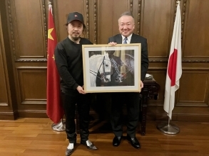総領事は張暁宇氏と上海で会うことができ大変嬉しいと述べ、張暁宇氏が駿馬をモチーフとした各種の芸術作品を通じて多くの人々に馬文化を伝え、文化交流を推進し、世界平和を促進していることを高く評価しました。