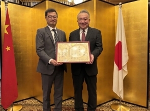2月4日、総領事・大使の岡田勝は、総領事公邸にて朱寅・上海星在文化伝播有限公司 CEOに対して在外公館長表彰を授与し、これまでの日中文化交流への多大な貢献に感謝と敬意を表しました。